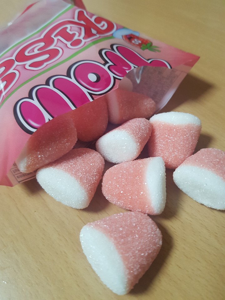 설탕 알갱이가 씹히면서 달달합니다. 나름 강한 딸기향도 올라옵니다. 식감이 좀 특이합니다. 요새 이런 젤리가 많아서 마시멜로 젤리라고 하시면 아시는 분들도 많으실 겁니다. 젤리 같으면서도 뭔가 마시멜로의 거품 끼 있는(?) 그런 느낌이 있습니다. 상당히 부드러운 느낌을 가지고 있는 젤리라서 페Ol스북에서도 키스하는 느낌이 나는 젤리라고 소개를 한 것이 아닐까 하는 생각이 듭니다. 개인적으로 맛있게 먹었습니다.