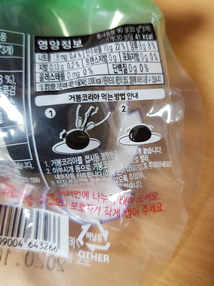 겉포장지를 뜯어보면 거북알 아이스크림처럼 한구한구 고무로된 비닐에 포장되어 있습니다. 아마 먹는 방법을 모르시고 막 뜯으신 분들은 당황을 하실것 같은 느낌이 들었습니다. 먹는 방법은 간단합니다.