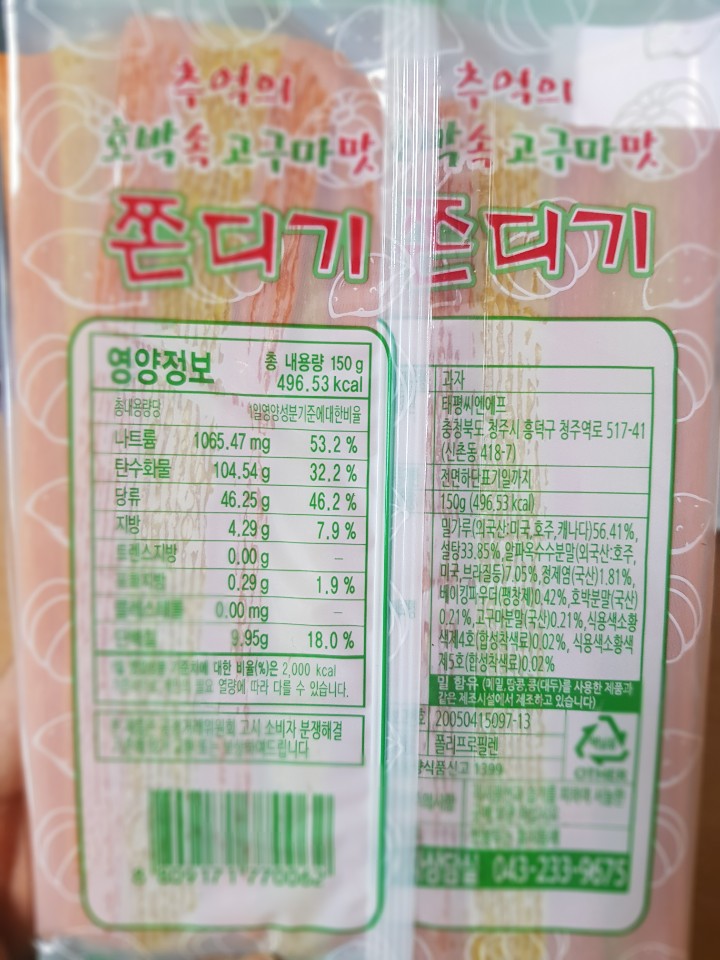 제품명 : 추억의 쫀디기(호박속 고구마맛)