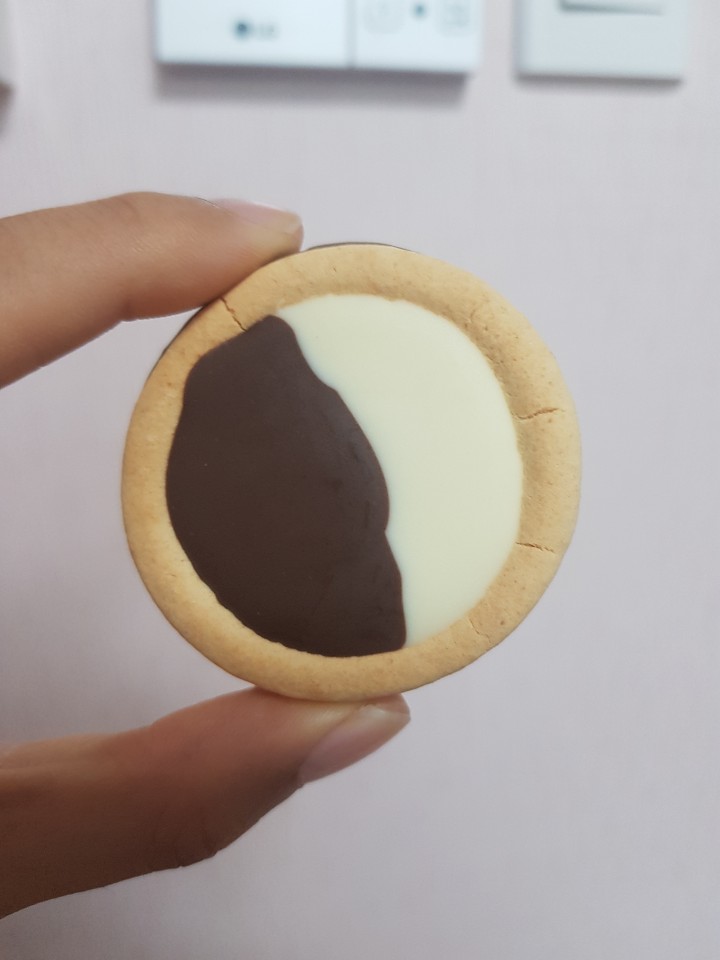 반은 밀크초코 반은 화이트 초코라고 생각하시면 돼요.